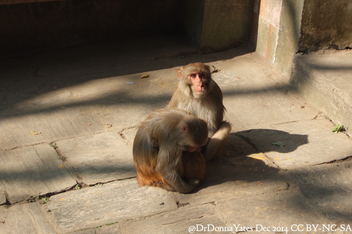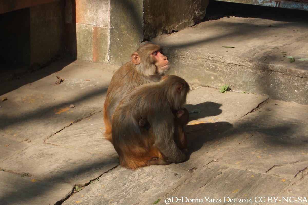 2014.12.10 Kathmandu 60 Swayambhunath monkey family ResizeBy Donna Yates CC BY-NC-SA